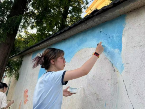 活动执行期间,当地日间气温持续攀升至 35℃以上,高温导致颜料易干结,给户外创作带来不小挑战。志愿者们无惧酷暑,坚持露天作业;夜幕降临后,又借着灯光细致打磨细节,同时克服蚊虫侵扰的困扰。暖心的是,社区环卫工主动送来水桶等工具提供支持,形成公益行动与居民互动的温情场景,让善意在协作中不断传递。