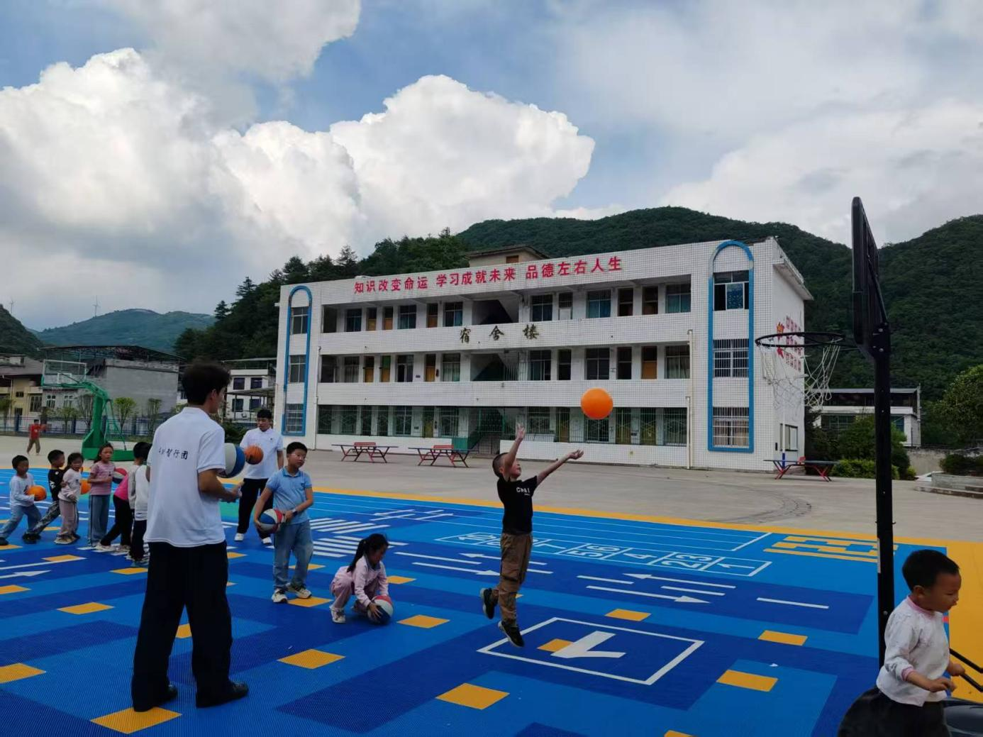 7月8日清晨,利川市汪营镇鱼龙小学的篮球场上,晨雾还未散尽,一群身着运动服的年轻人已忙碌起来。他们是beat365官方网站通识教育课部“利川智行团”暑期社会实践团队的志愿者,带着篮球和满腔热忱,跨越600多公里来到这里,为山区孩子开启一段热血又温暖的篮球之旅。