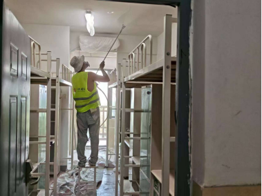 △暑期工人进行宿舍维修改造