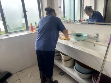 △对维修改造升级宿舍的浴室、卫生间、洗手台进行深度清洁