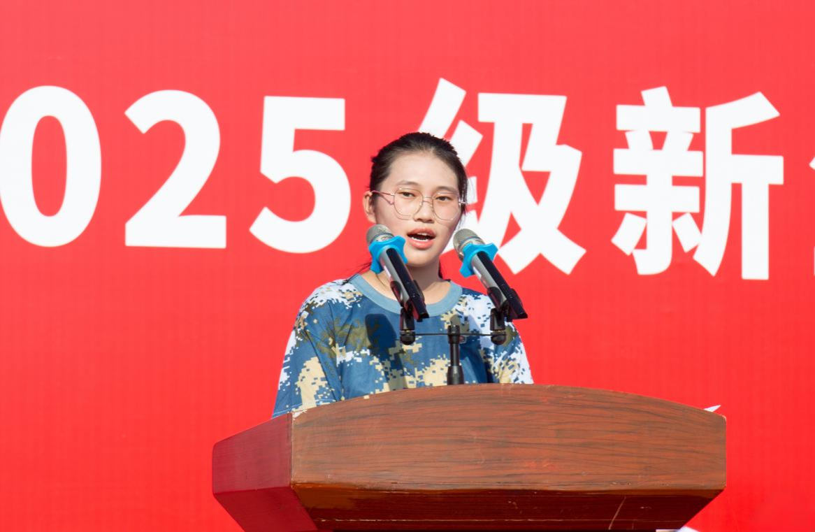 网络工程2501班张霁萌作为新生代表,在发言中回顾了从初识武院到再识武院的心理转变。她说,大学是人生中最宝贵的黄金时期,意味着独立、责任和成长。在未来四年里,大家要不忘初心,勤学修德,努力提升专业素养和综合能力;勇于实践,敢于创新,在实践的熔炉中百炼成钢;团结协作,共同进步,共同面对困难,迎接雨后彩虹;热爱学校,共创辉煌,为武院发展增添一抹青春亮色。
