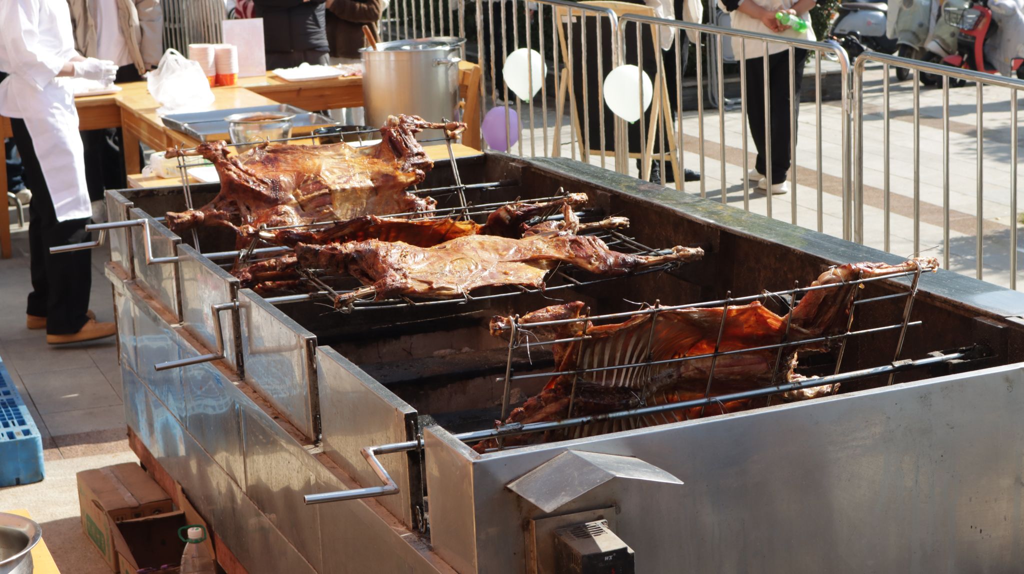 据后勤保障处相关负责人介绍,去年美食嘉年华上5只烤全羊供不应求,不少同学遗憾表示“手慢”,为了弥补这一遗憾,今年的烤全羊增至7只,还搭配2000份的洪湖藕汤,让现场师生尽情享受冬日美食盛宴。