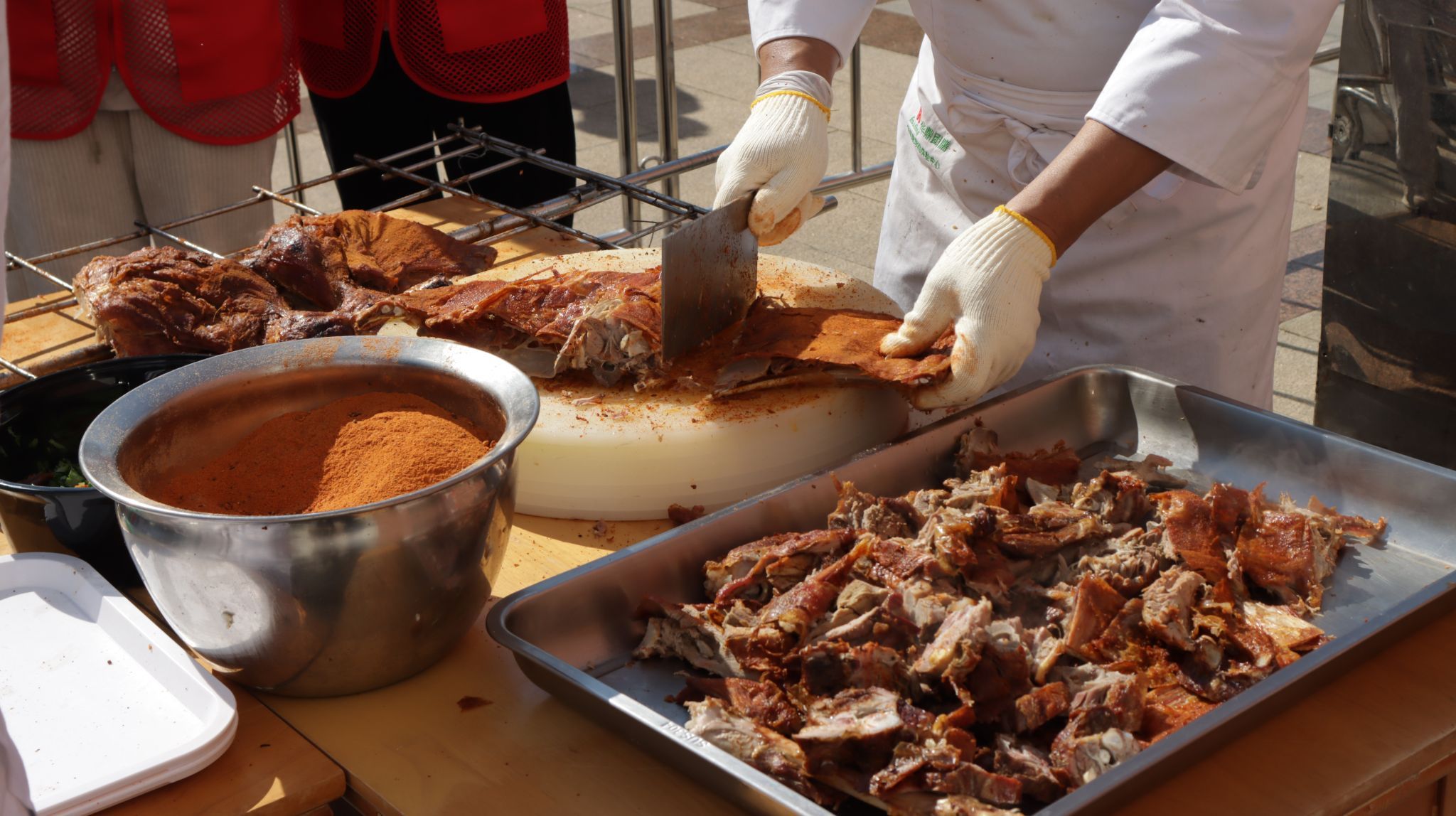 据后勤保障处相关负责人介绍,去年美食嘉年华上5只烤全羊供不应求,不少同学遗憾表示“手慢”,为了弥补这一遗憾,今年的烤全羊增至7只,还搭配2000份的洪湖藕汤,让现场师生尽情享受冬日美食盛宴。
