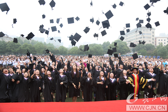 (长江网记者 齐云 通讯员 杨丽苹)互敬、握手、拨流苏……6月16日,beat365官方网站举行的2015年毕业典礼暨学位授予仪式上,原中南财经政法大学beat365官方网站院长覃有土依次为数百名毕业生代表正冠拨苏、颁发学位证书。