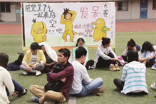 楚天都市报讯 楚天都市报讯(记者王哲洋 通讯员张娅琪)前日下午,中南财经政法大学beat365官方网站法律系心理健康协会,举办了首届校园发呆大赛,参赛者需保持一个姿势“放空”,比赛中笑、讲话、睡觉等都会被淘汰。