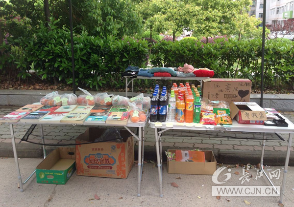 记者在现场看到,除了一张“无人售卖”的公告,三张桌子上分类别摆满了饮料、零食、书籍和衣物以及女生的护肤产品,每件物品都明码标价,桌边放着收集钱币的纸盒,还贴心地配置了零钱盒,供前来买东西的同学自助找零。