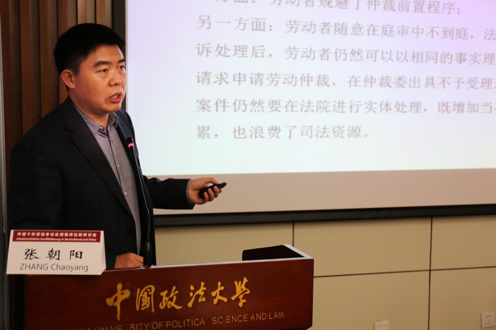 第三单元“中德个体劳动争议处理的诉讼程序”由谢增毅主持。主题发言人和发言题目依次为克劳斯﹒贝普勒“德国个体劳动争议处理的诉讼程序”、张朝阳“中国的个体劳动争议处理审判程序的特殊性——基于一般民事案件的审判程序的比较”、侯军“中国劳动争议审判中对意思自治原则的适用与限制”,随后娄宇、杨飞作为与谈人相继阐述了富有启发性的观点,接着与会者进行了30分钟热烈的自由研讨。
