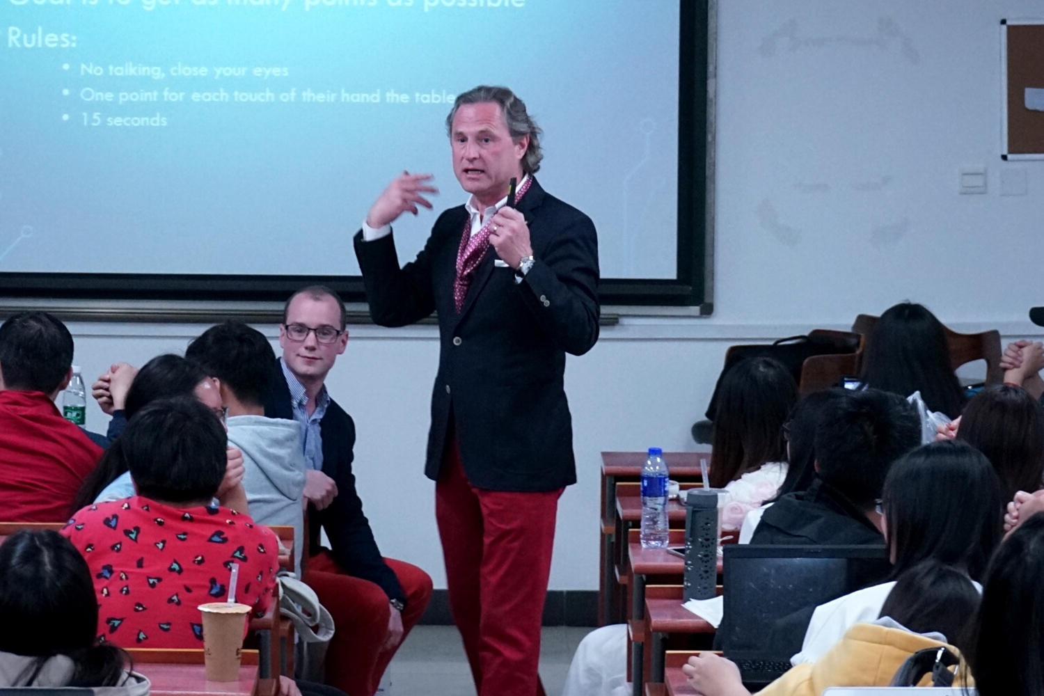 其次,韦伯克教授指出谈判在律师执业中的重要性。 “律师是好的谈判者吗?” 韦伯克教授的提问引发同学们的深刻思考。然后,韦伯克教授让现场同学们两两分组,进行了有趣的扳手腕比赛。通过这个小游戏,韦伯克教授说明了谈判对胜负结果的影响。韦伯克教授教导我们不应该过度追求输赢,而是把击败对方的心态转变为为客户赢得最大的利益。作为律师,应该学会如何去谈判,相互合作,已实现双方共赢。