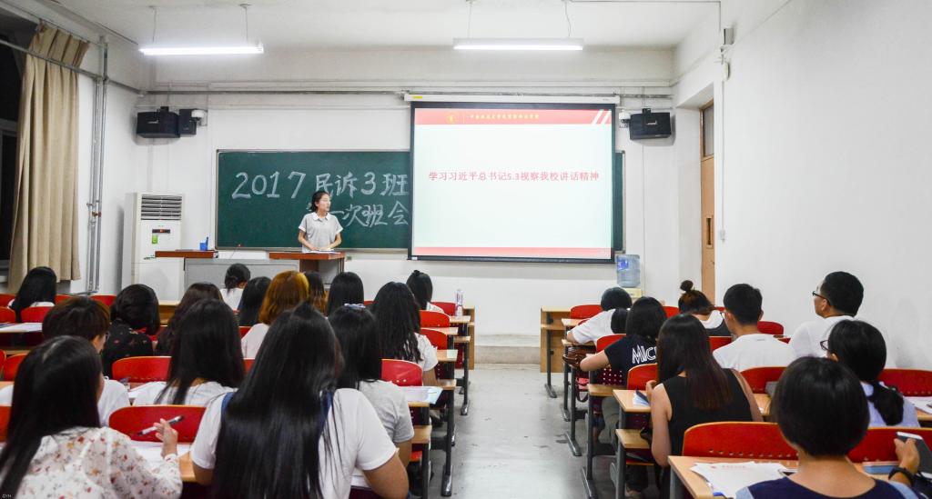 为认真学习、深入贯彻习近平总书记考察我校时的重要讲话精神,9001cc金沙以诚为本17级民诉班于2017年9月9日举办了主题为“学习贯彻习近平总书记在我校考察时重要讲话精神”的班会活动。