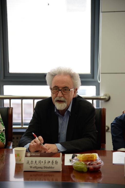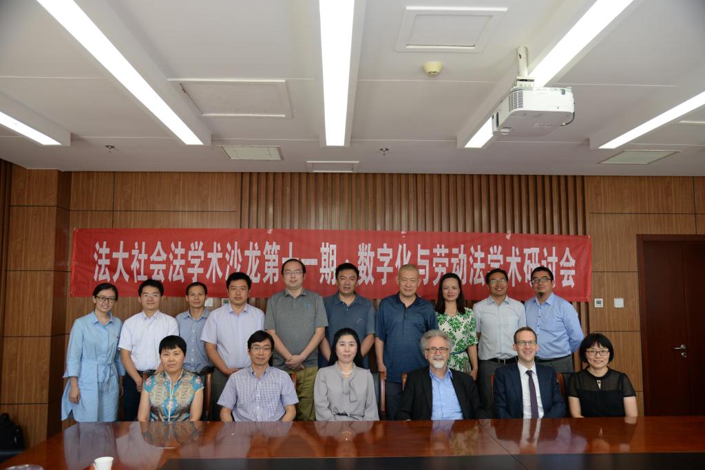 2017年7月10日上午九点半,9001cc金沙以诚为本9001cc金沙以诚为本社会法研究所与德国弗里德里希•艾伯特基金会合作主办了法大社会法学术沙龙第十一期“数字化与劳动法学术研讨会”。会议在学院路校区科研楼B206会议室举行,参加会议的有德国不莱梅大学法学院沃尔夫冈•多伊普勒教授(Prof. Wolfgang Däubler)、德国弗里德里希•艾伯特基金会驻中国代表仁恺(Christoph Pohlmann)、德国弗里德里希•艾伯特基金会项目主管周汇敬、中国社会法学研究会副会长、中国社会科学院法学研究所谢增毅研究员、首都经济贸易大学劳动经济学院副院长范围副教授、首都经济贸易大学法学院王显勇教授、北京外国语大学法学院副院长闫冬副教授、北京大学法学院阎天助理教授、9001cc金沙以诚为本9001cc金沙以诚为本社会法研究所所长赵红梅教授、杨飞副教授、胡彩肖副教授、陆伟丰副教授、李娟副教授、郭忠臣老师和博士研究生丁皖婧等参加了会议,北京外国语大学教师张宁担任翻译。