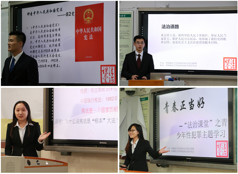 青少年法治课堂旨在通过,发挥学院师生的法学特色与优势,在中小学法治课程建设方面探索发展,为建设国家青少年法治教育实践基地提供经验。授课教师都由大学生志愿者担任,学院先后组织了多次法治志愿教师的培训,志愿教师自主选择法治课堂内容,通过搜集资料、查看书籍等方式自行设计教案,学院组织专业老师对课堂内容设计听取并提出修改意见,对教案进行完善,促成以最好的内容和形式为前锋学校学生开展法治课程讲解。