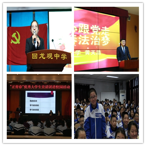 “正青春”优秀大学生事迹宣讲团旨在弘扬、践行社会主义核心价值观,展示、培养大学生志愿服务意识和优良精神风貌,向广大中学生传递青春正能量,引导他们积极健康成长。在昌平区教委的大力支持下,宣讲团于2014年11月24日正式启动,先后走进昌平区二中、昌平区前锋学校、小汤山中学、黑山寨中学、长陵中学、下庄学校、亭自庄中学、育新学校、阳坊中学等,受到了所到学校师生的热烈欢迎。宣讲过程中,大学生们以贴近实际、贴近生活、贴近学生为原则,从多个角度,多个方面生动展示了当代大学生积极向上、努力拼搏、无悔青春的光辉榜样,引导广大学生以榜样为力量,从先进事迹中得到滋养,从优秀学长们奋斗的足迹中找到前进的方向。他们富有感染力、内容丰富生动、形式互动亲切的演讲在昌平区各中学间掀起了一股积极向上的青春风潮,每学期都有昌平区多所中学向宣讲团发出了诚挚邀请。
