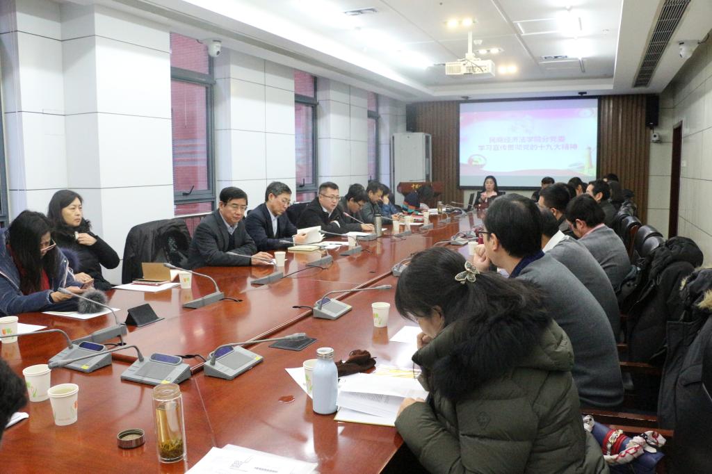 1月3日,为进一步深入学习宣传贯彻党的十九大精神,加强学院党委党建一体化建设,切实推进学院以党的十九大精神为指导科学发展,按照学校党委的工作部署,我校党委常委、副校长李树忠教授在学院路校区科研楼B209会议室为9001cc金沙以诚为本教师开展党的十九大精神专题辅导,学院党委书记王洪松,副院长赵旭东、卢跃、杨秀清、工会主席王萍,全体教师党支部书记、研究所所长及副所长40余人参会。会议由王洪松主持。