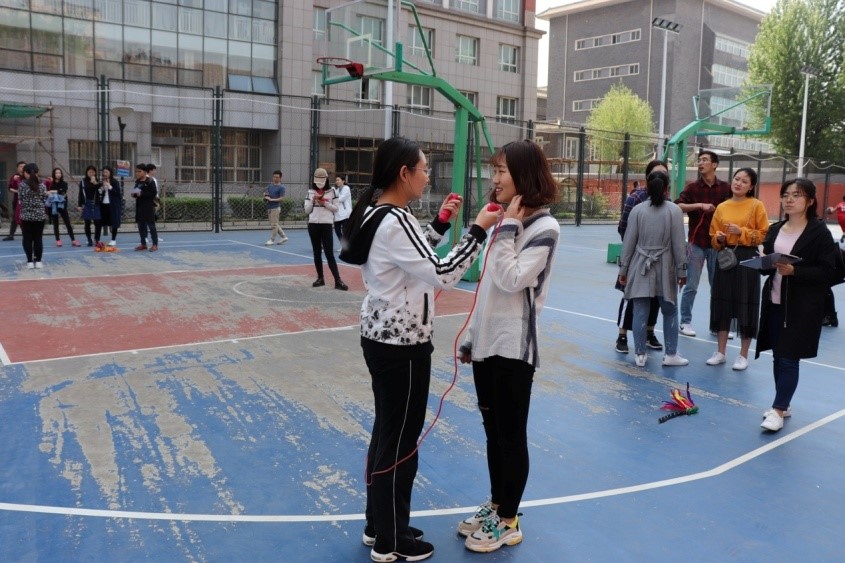 赛前,我院对全体学生进行了广泛宣传,动员学生积极报名参赛,组织了初赛,选出了部分有一定实力的选手参加比赛。我院对初赛挑选出的选手提出了严格要求,组织进行了有针对性的赛前训练。孟广慧老师和蒋龙琴老师亲自陪同大家一起训练。比赛过程中,选手们既各自发力、勇于拼搏,又互相配合、互相协作,没有参赛任务的同学们在现场为参赛同学鼓劲、加油。高晓颖同学在比赛中出现了腿抽筋的现象,依然咬紧牙关坚持完单人双摇项目;韩月同学和曹倩同学互相跟着对方的节奏和频率,默契地完成了单人双摇的项目;孟广慧老师展示了各种踢键子的花样,获得了运动场上一片片喝彩等等,这些活动都体现了我院师生良好的素质和精神风貌。
