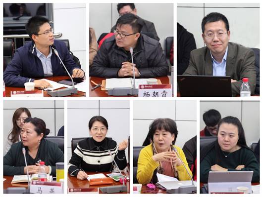与会学者就讲座主题与谈和交流,上图依次为严厚福副教授(上左)、杨朝霞副教授(上中)、于文轩教授(上右)、马燕副教授(下左一)、杨素娟副教授(下左二)、庄敬华副教授(下右二)、朱炳成助理研究员(下右一)