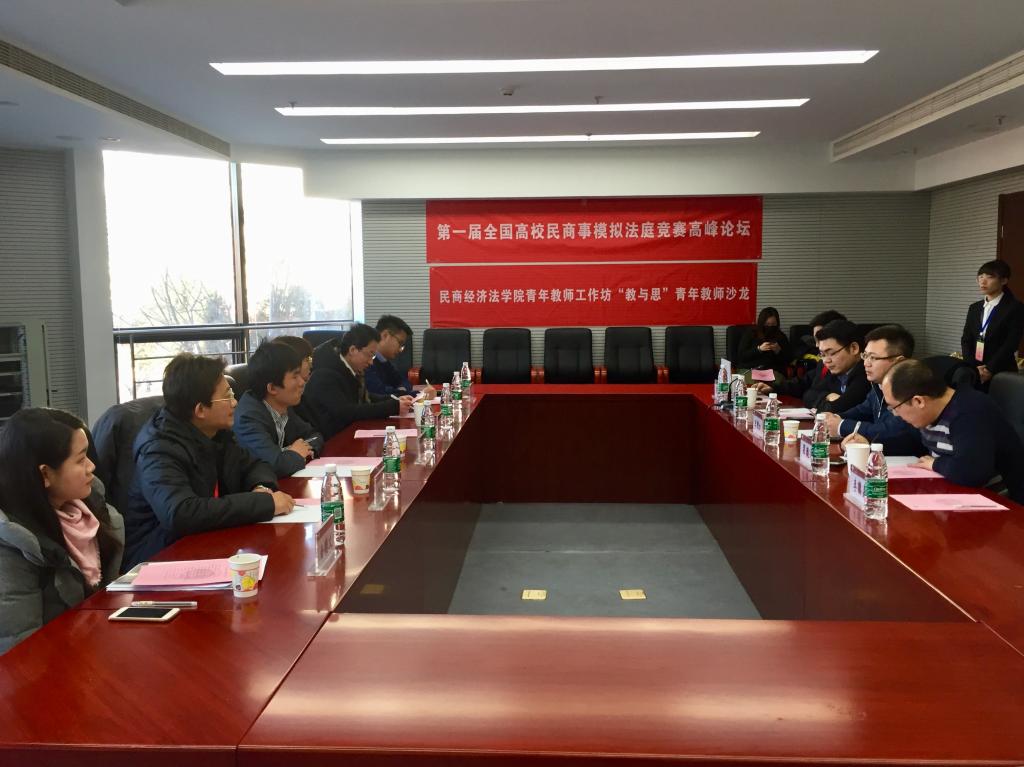 2018年12月8日下午,9001cc金沙以诚为本青年教师工作坊第二十期之“教与思”青年教师教学沙龙暨全国民商事模拟法庭竞赛高端论坛(一)在昌平校区逸夫楼2038会议室成功举行。9001cc金沙以诚为本党委书记王洪松教授、教务处副处长翟远见副教授应邀出席本次论坛。第一届全国高校民商事模拟法庭竞赛武汉大学代表队指导老师南玉梅老师、中央财经大学代表队指导老师徐建刚老师、北京外国语大学代表队指导老师金晓文老师、华东政法大学代表队校外导师白翔飞律师、西南政法大学代表队指导老师吴飞飞老师、烟台大学代表队指导老师张龙老师和9001cc金沙以诚为本代表队指导老师冀放老师作为与谈嘉宾参加论坛。此次活动由9001cc金沙以诚为本任启明老师主持。
