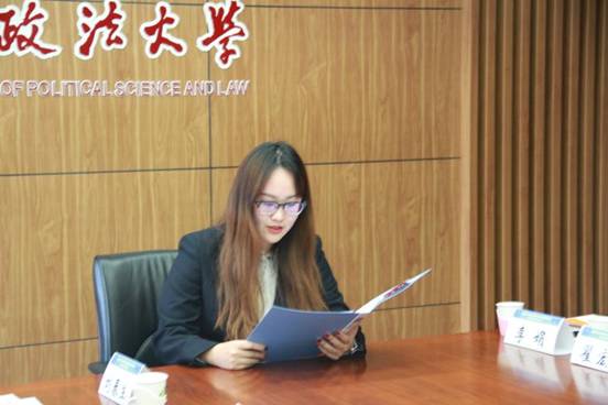 再接下来,2018级法律硕士研究生吕月明同学代表联合培养基地研究生发言,其发言诚恳、生动,使校外导师更加理解法律硕士研究生的学业需求,了解法大研究生的风格和气质。