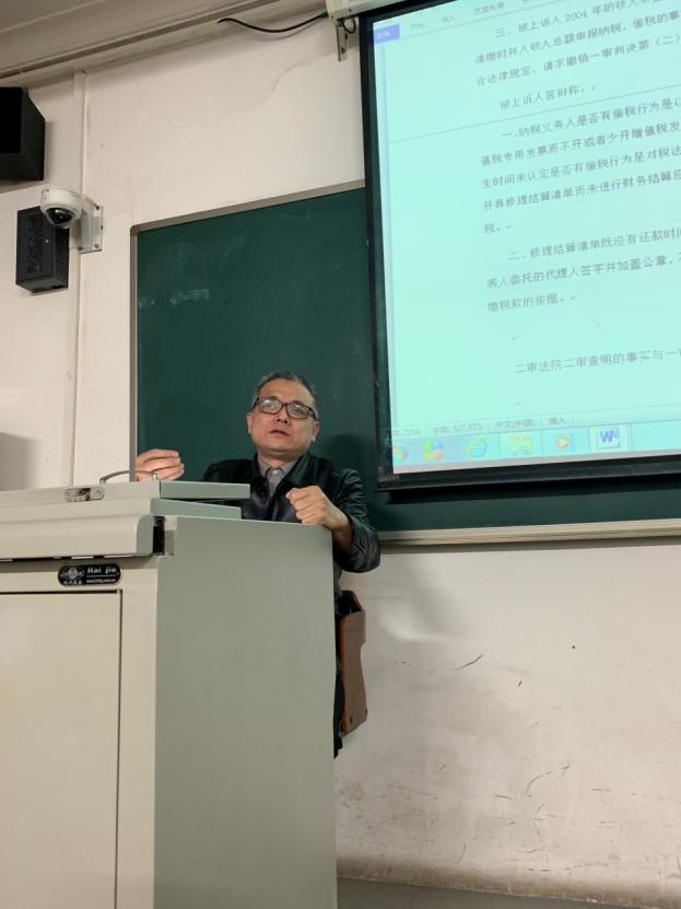 随后,王军主任详细地介绍了南阳市国家税务局与上海大众汽车南阳销售服务有限公司税务纠纷案,指出对索取销售款的凭据的定性这一问题乃此案的核心问题。在江苏格雷特起重机械有限公司与南通市通州区国家税务局税务行政处理纠纷案中,指出因为不合规的发票所做的会计处理在税法上得不到承认而给企业带来巨大的税收负担。在北京台富创展房地产经纪有限公司、绥中鑫宏房地产开发有限公司、杨国义、王海波、武长涛与张文兴合同纠纷案中,当事人之间在民法上有两个法律关系,但是在税务机关执法过程中一般会认定为自然人直接向房地产建筑企业提供的劳动,从而只认定一个法律关系,这一案件充分地向同学们展示了税法理论、民法理论和税收实践之间的区别。以上三例实务案件中,王军主任归纳了案件的核心争议点,评价了税务机关、法院和当事人的做法,启示同学们在实务中要以解决实际问题为导向,精准把握法律法规,从纷繁复杂的事实中归纳出在税法上有意义的事实,注重多途径解决问题。随后王军主任热情回答了现场同学的提问。