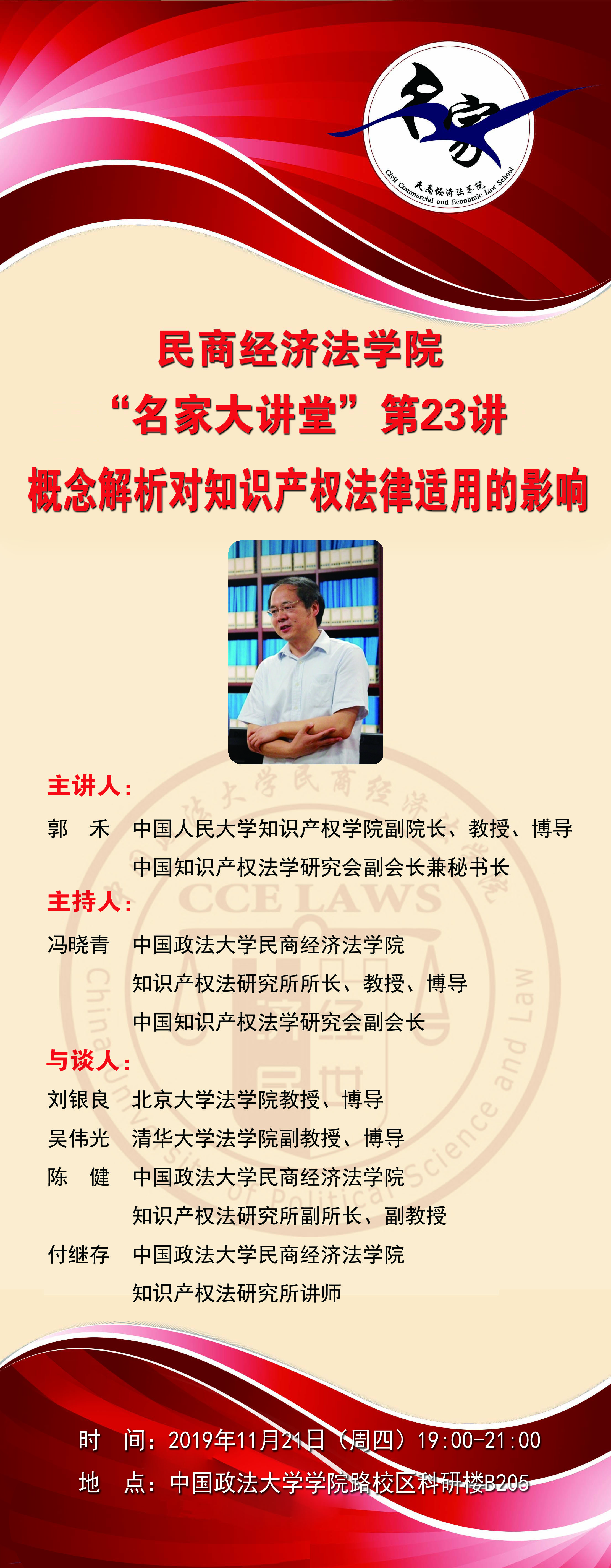【活动公告】9001cc金沙以诚为本“名家大讲堂”第二十三讲——概念解析对知识产权法律适用的影响