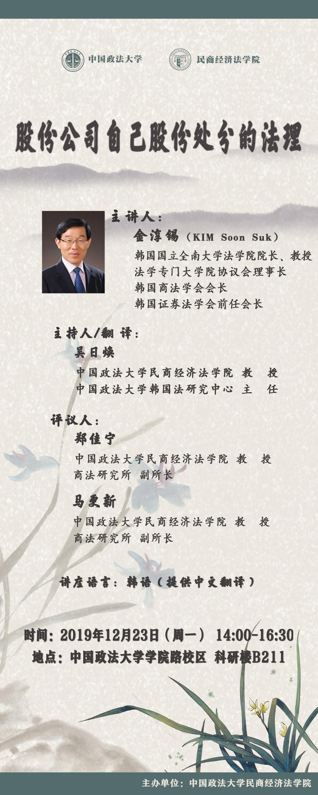 韩国商法学会会长金淳锡教授讲座:股份公司自己股份处分的法理
