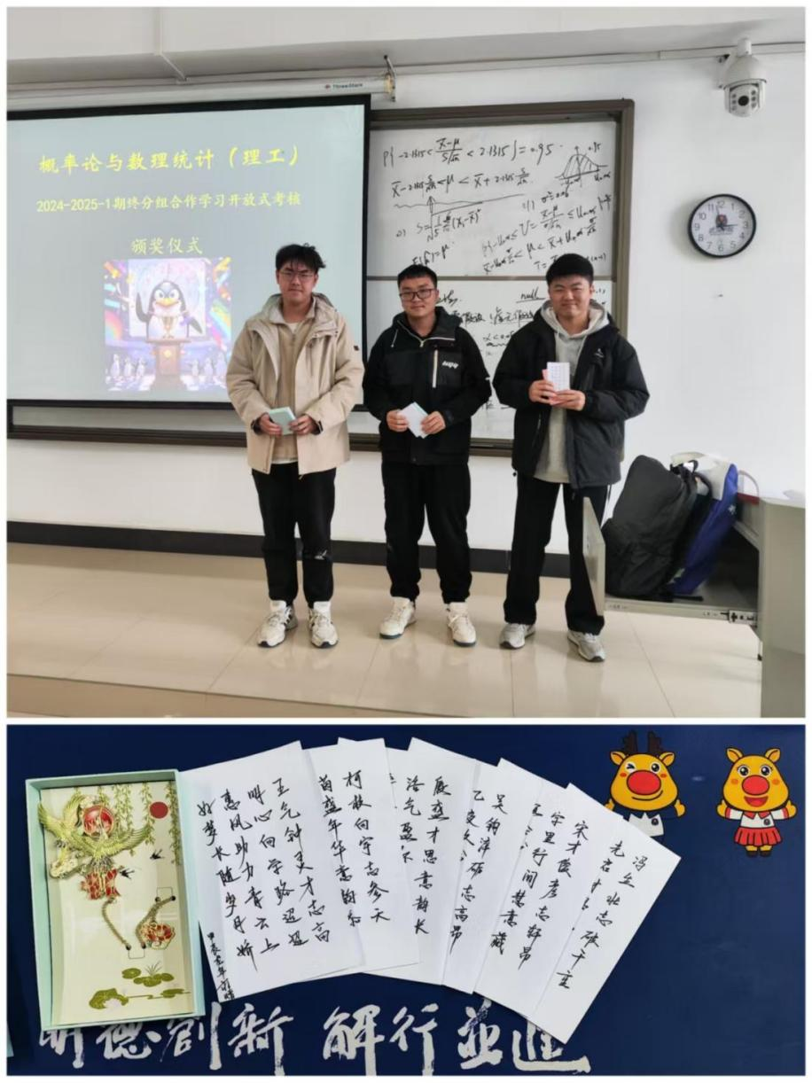 教学相长,蒋磊老师在不断改革创新的同时也收获了一些荣誉,2023年荣获校第四届教学创新大赛一等奖,2025年,他又带领团队参加首届全国高校教师数智教育创新大赛,荣获二等奖。他主持的校级重点教研项目《数智赋能混合式教学模式创新研究——以应用型本科数学教学为例》,致力于将数智技术与传统教学深度融合,为教学改革注入新活力。他还将思政元素融入课程,主持《概率论与数理统计》曾获校级课程思政示范项目、省级一流课程认定,真正实现了知识传授与价值引领的有机统一。