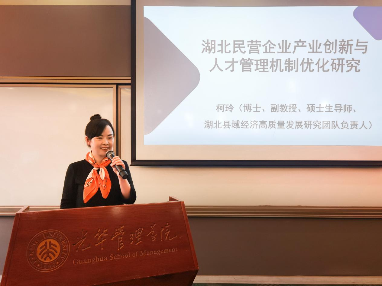 2021年11月4日下午,受教育部长江学者特聘教授、北京大学光华管理学院党委副书记王辉邀请,beat365官网副教授柯玲站上北京大学光华管理学院的讲台。为现场北京大学光华管理学院近20名博士研究生带来“湖北民营企业产业创新与人才管理机制优化研究”的讲座,这场别开生面的讲座吸引了现场师生的特别关注。