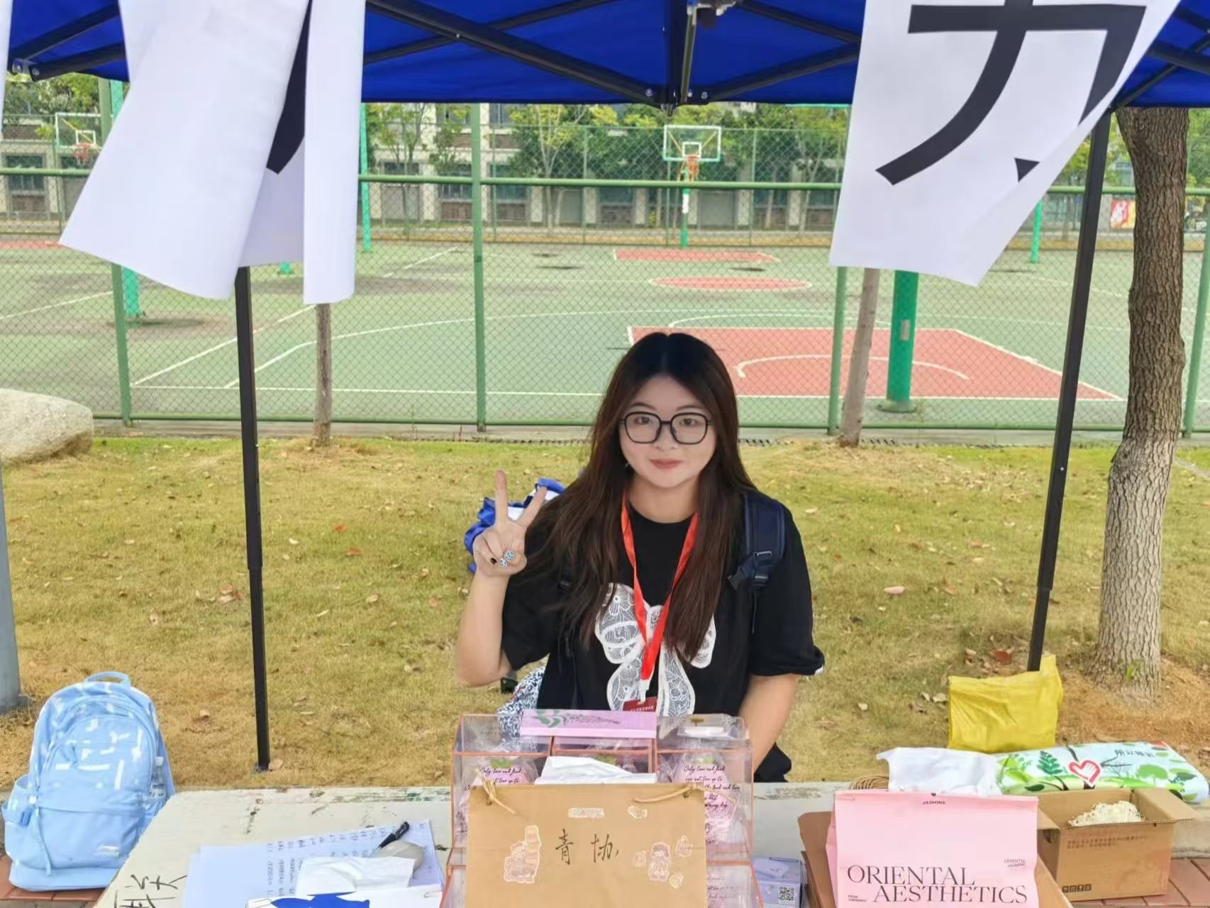 华心妍(左三)在比赛现场