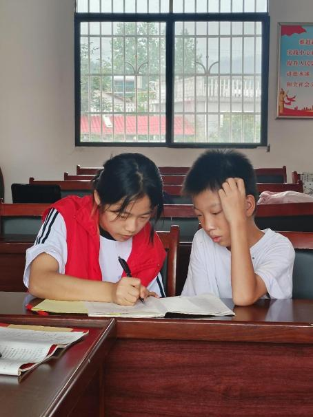 但浚在“三下乡”实践活动中辅导孩子学习