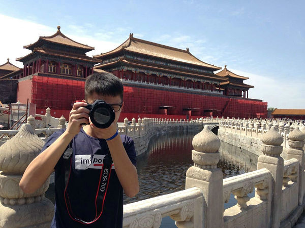 事实上,除了对故宫的热爱,他还特别喜欢摄影。在他还在读高中的时候,就非常喜欢拍照,想要把美好的东西记录下来,留在以后可以慢慢回味,那个时候就一直想要一台自己的单反。后来,在大一的时候终于有了人生中第一台单反,从那以后,在摄影这方面的兴趣就更加浓厚了,会自己不停地慢慢摸索。他也参加了传播系的微电影兴趣小组,参与学校微电影和宣传片的拍摄,也因此对摄影器材更加了解,拍摄技术也更加成熟了。