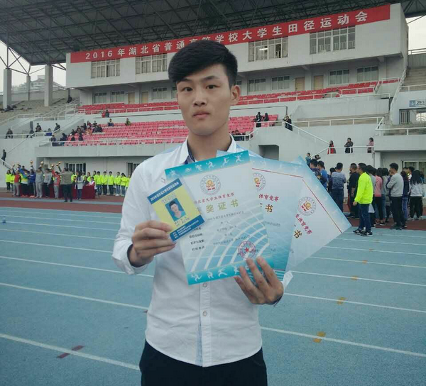 结束训练之后,校运动会、湖北省大学生田径运动会、包括之后的体测,他都表现出了一个运动员应有的素质。在回到学校学习生活之后,每天晚上他依然会去运动场独自训练,每天如此。为什么会一直坚持到现在?“比如训练跑600米也许别人可以用一分五十秒跑完,但我用两分十秒也会坚持去跑完全程,只要我坚持了下来,一天的训练就没有白费。”他坚定的说道。