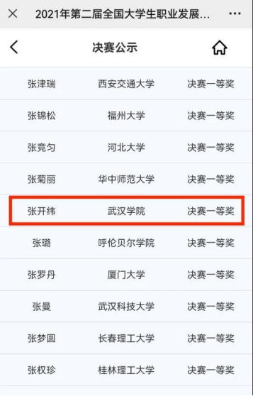 A:我是在2021年9月份的时候通过同学介绍了解到这个比赛的,当时刚刚开学,我就抱着试一试的心态参加了初赛,初赛是统一的知识问答考试,最后考了97分,就进入了决赛。决赛是在12月份举行的,有两个题目,第一题是对自己未来的职业规划书,第二题是假如毕业后没能从事本专业的职业,该何去何从,同时也写一份职业规划书。