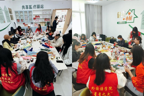 在这个过程中,每一位参与者都全神贯注地参与到活动中。他们或是认真聆听志愿者的指导,或是小心翼翼地折叠、剪裁、缠绑,每一步都力求做到最好。随着时间的推移,一朵朵色彩斑斓的手工花逐渐绽放,每个人的脸上都露出了自信和满足的笑容。