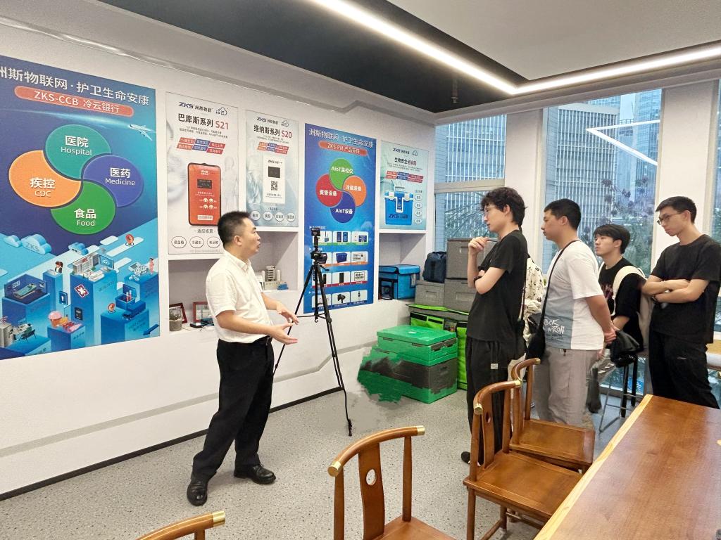 首先,学生们来到深圳洲斯移动物联网技术有限公司参观学习,了解企业的具体情况。每到一处,董事长围绕公司成立背景、发展状况、产业布局、核心业务等做了详细讲解,从无线到无限,缔造“云”-健康大数据云、“网”-基于ZKS interBow的最后一公里物联网络、“端”-洲斯传感器终端产品的感知健康物联网生态圈,甚至让学生零距离接触物联网相关的产品,不仅帮助学生们了解物联网在实际中的应用,更激起了学生们对专业学习和实习实训的热情。