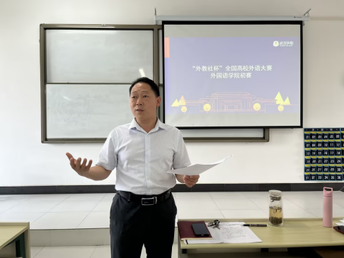 5月22日下午,外国语学院在2号学院楼254教室召开青年教师教学能力提升研讨会。院长陈金平主持会议,全院教学督导、系部主任、副教授以上职称骨干教师参加研讨会。研讨会以观摩、学习、交流、讨论第十五届“外教社杯”全国高校外语大赛和第九届青年教师教学竞赛学院初赛的形式进行,参加比赛的选手分别进行了说课和授课演示,全院专任教师参加观摩学习。