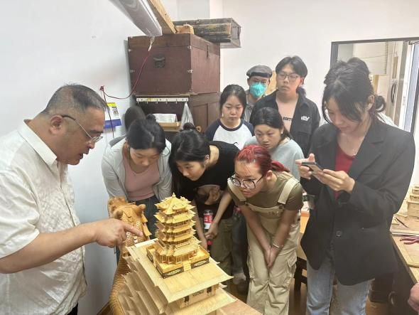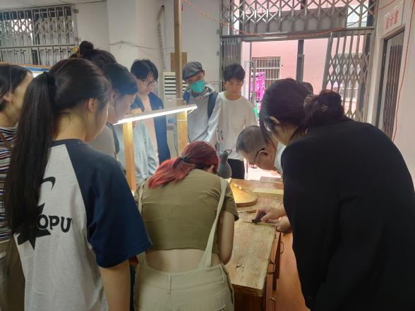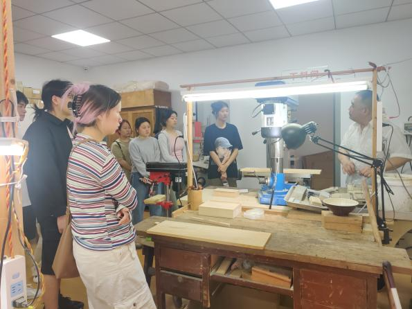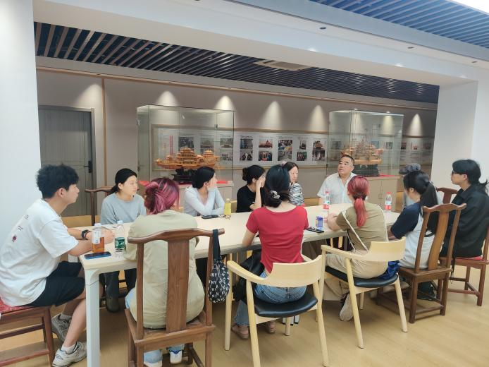 6月4日上午,在工艺美术专业教师袁玉冰的带领下,工艺美术21级和22级的学生代表们前往武汉市硚口区非遗文化馆,参加了一场别开生面的木雕研学活动。本次活动由国家级非物质文化遗产项目“武汉木雕船模”的传承人龙勇主持,旨在让同学们深入了解非遗项目的历史和现状,亲身体验学习木雕技艺的魅力。