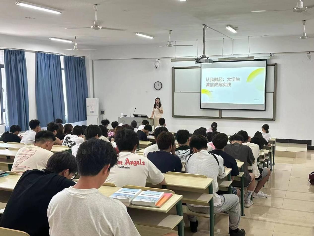 许宦琦从三个方面深入浅出地讲解了诚信教育的重要性、大学生诚信现状分析和诚信实践策略。他详细解读了诚信的内涵和重要性,使学生们从思想上认识到诚信对于个人成长和社会发展的重大意义。他结合生动案例剖析了当前社会中存在的诚信缺失现象,引导学生们深刻反思,自觉树立诚信意识。