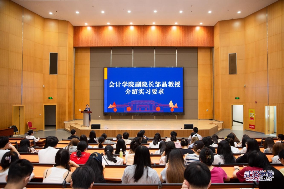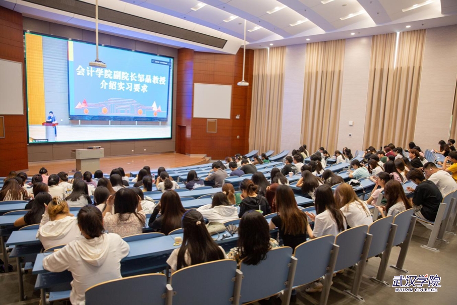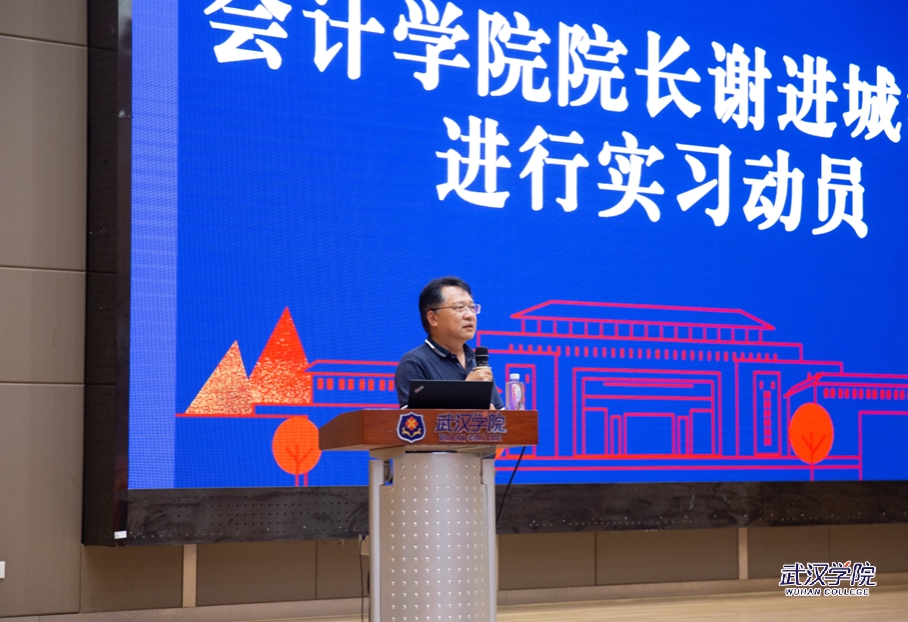 会上,邹晶解读了会计学院实习管理制度和具体要求,同时介绍了集中实习单位暑假招聘实习生的相关信息。谢进城对学生进行实习动员。他说,实习不仅是学习知识和提升技能的过程,更是了解社会和锻炼能力的重要机会。他鼓励学生们珍惜这次机会,培养自己的职业素养和团队协作能力,为未来的职业发展打下坚实基础。