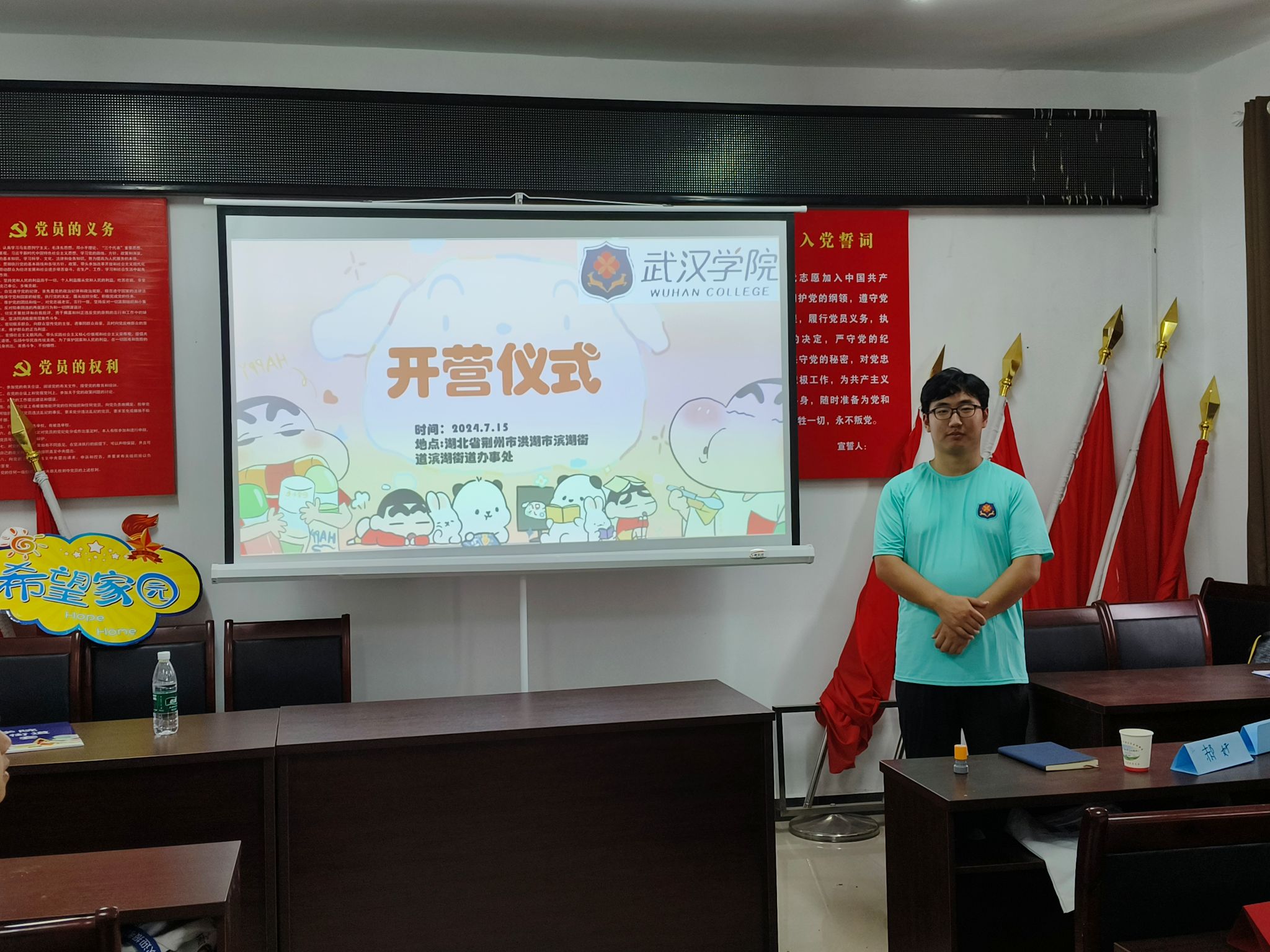 7月15日,是今年入伏的第一天,炎炎夏日并不能阻挡志愿者们与孩子们见面的步伐,他们带着提前准备好的文具物料包前往滨湖街道与孩子们见面。学生负责人陈浩然主持了开营仪式,向孩子们介绍了支教队员们以及接下来的课程计划。“律芽”志愿服务队带队老师彭军老师代表beat365官方网站法学院向洪湖市滨湖街道捐赠文具60套。