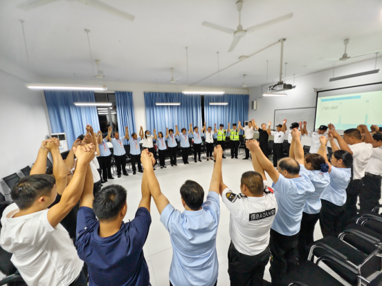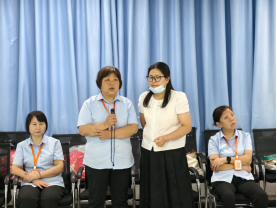 培训伊始,后勤保障人员围坐一圈,魏荣霞以游戏“大风吹”作为开场,营造氛围,调动大家积极性,为接下来循循善诱的提问与讲课打下良好基础。