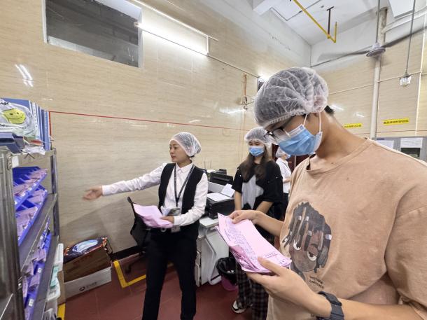 10月16日下午,后勤保障处邀请16名来自各院系权益部的同学深入食堂后厨, 全面了解食堂日常运作情况。三位食堂经理化身“导游”,细致讲解了食堂架构、服务理念、标准化作业流程、食品安全管控、原材料采购与储存、厨房卫生管理及四害防治等关键环节。