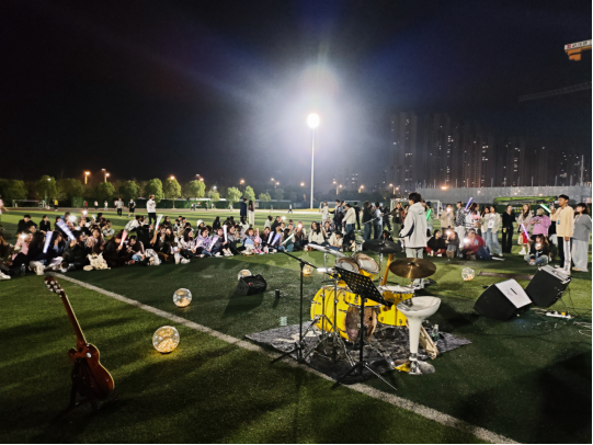 10月30日晚,一场由外国语学院团学联主办的草坪音乐节在学校操场如期举行,吸引了众多校园音乐爱好者参与。