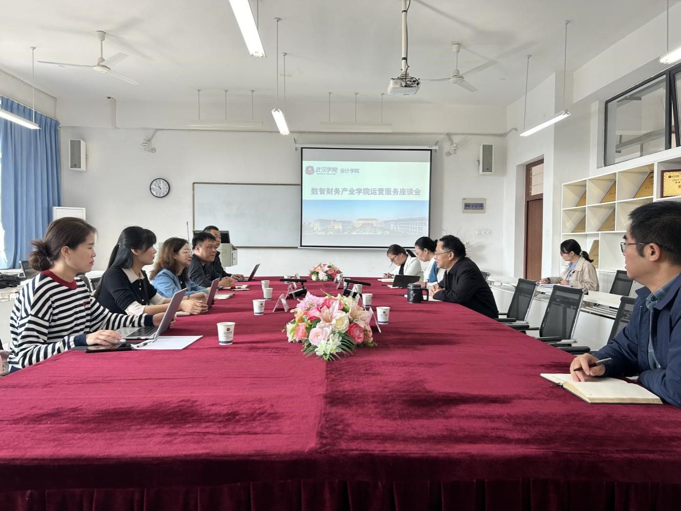 11月12日,会计学院召开数智财务产业学院运营服务座谈会。会议由院长谢进城主持,教务处处长韦玮、副处长谢忠琴,新道科技股份有限公司助理总裁刘莉女士出席并发表讲话,新道科技股份有限公司湖北分公司毛恒博、会计学院院领导及基层教学组织负责人参会。