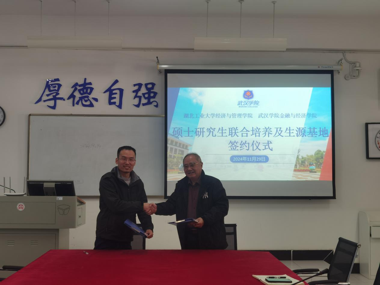11月29日上午,金融与经济学院与湖北工业大学经济与管理学院联合培养硕士研究生合作签约仪式举行。湖北工业大学经济与管理学院副院长王利军出席签约仪式。