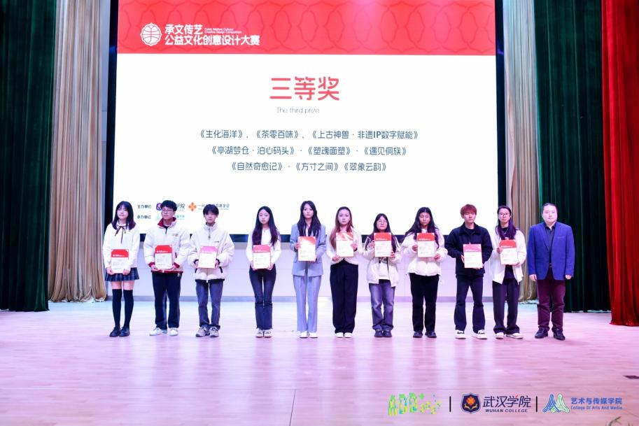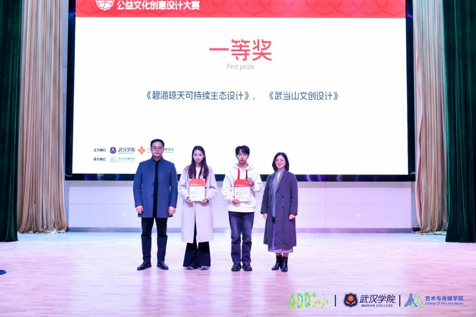 11月30日下午,艺术传媒学院联合一丹大学教育基金会共同举办的“承文传艺·公益文化创意设计大赛”颁奖典礼在刘炽平报告厅顺利举行。大赛旨在鼓励大学生运用创意设计为公益项目赋能,提升项目社会影响力,并培养大学生的公益意识和责任感。