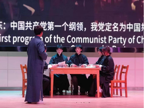 一部以党的一大重大事件为题材的话剧《红船初心》尤为引人注目。该剧生动地讲述中国共产党开天辟地、敢为人先的首创精神,让观众深刻感受到了共产党人坚定理想、百折不挠的奋斗精神,立党为公、忠诚为民的奉献精神。