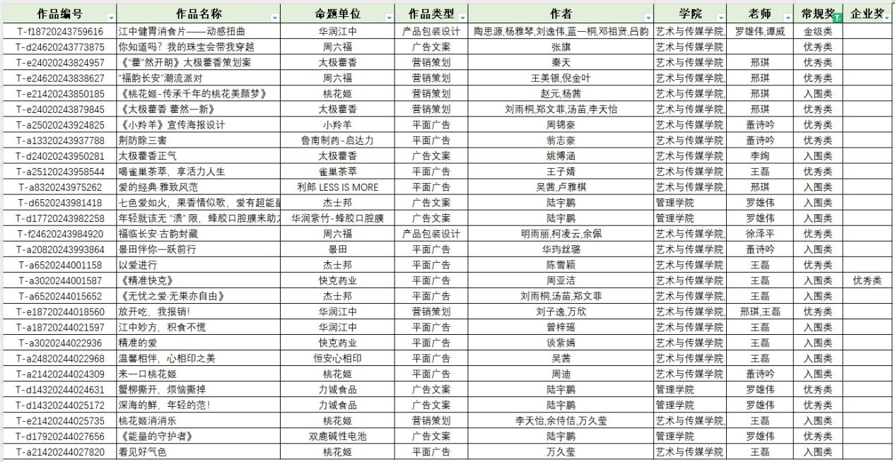 1月2日,2024年中国大学生艺术节秋季赛结果正式公布。以艺术与传媒学院为主的beat365官方网站学子累计递交作品167份,最后共获得15项入围类、13项优秀类、1项金级类等各类奖项共计29项,获奖级别取得历史性突破!