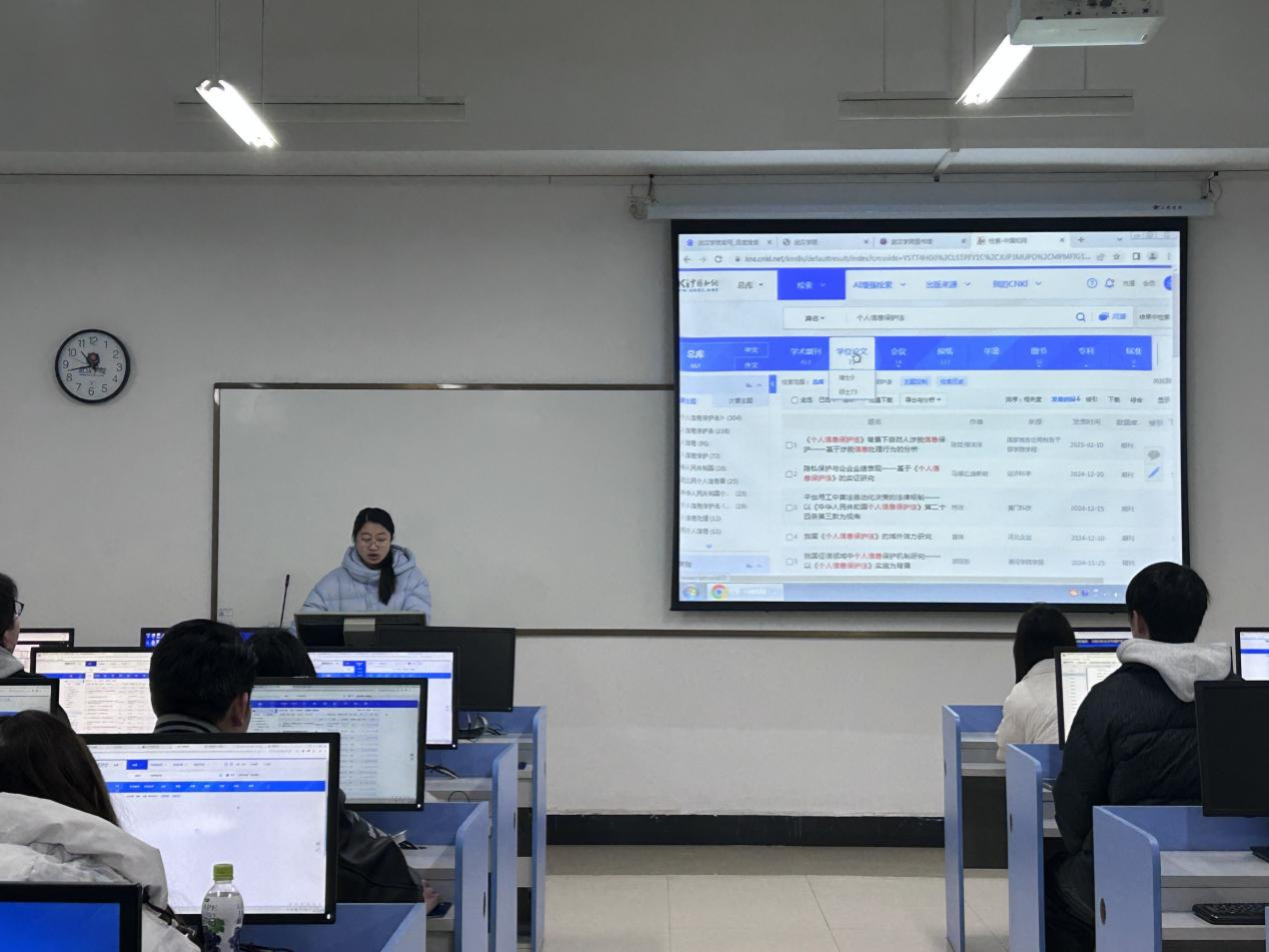2月26日上午,图书馆在中央教学楼1101室开展了2025年首场预约培训。本次培训由图书馆信息参考咨询与阅读推广部刘雨齐老师主讲,法学2408班的30余名同学参加了培训,培训内容围绕“图书馆常用电子资源的检索与利用”,重点讲解了中国知网和北大法宝数据库的使用技巧。