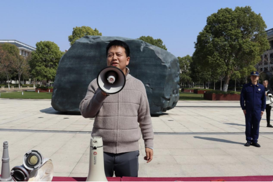 演练伊始,后勤保障处(保卫处)廖祥森老师作动员讲话,他讲述了本次消防安全实操演练培训开展的重要性,并强调:“今天的演练不是走过场,而是要让大家在真实场景中形成肌肉记忆,我们不要纸面上的满分答卷,只要实战里的满分表现。”