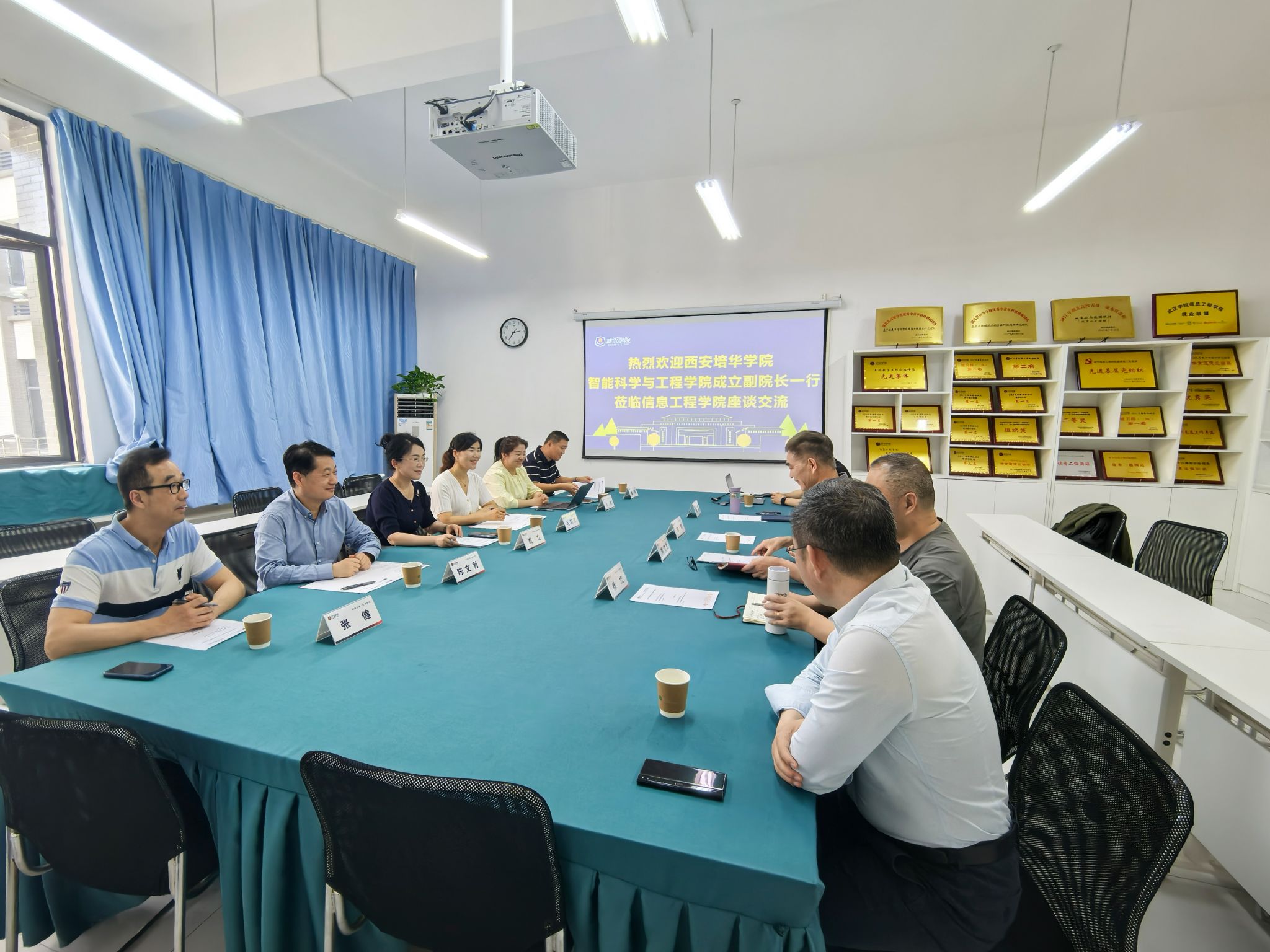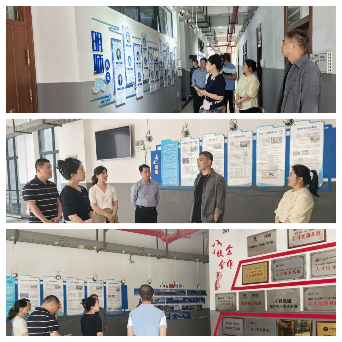 座谈会开始前,来访人员参观了信息工程学院文化墙,信息工程学院院长郑建生全程陪同并详细解读了文化墙中专业介绍和校企合作两个版块的内容。