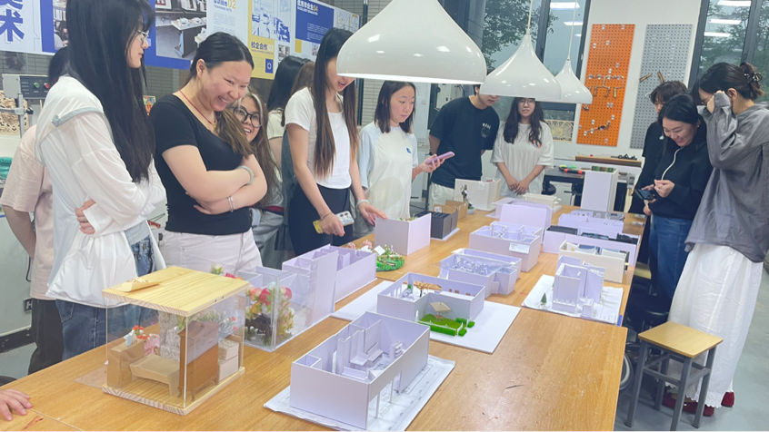 此次展览环境设计专业组织跨年级学生现场学习,低年级学生在教师带领下分析模型结构,高年级创作者则驻场分享设计思路。同时专业教师团队对作品进行现场评分,重点考察材料运用合理性和空间表现力。有学生表示:“亲手调试激光切割参数的经历,让我们对课堂理论有了更深刻的理解。”
